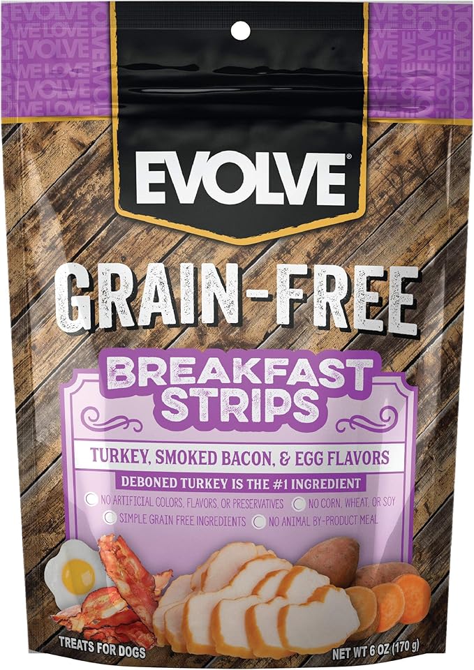 Evolve Grain Free Turkey, Bacon and Egg Flavored Breakfast Strips Dog Treats, 6oz