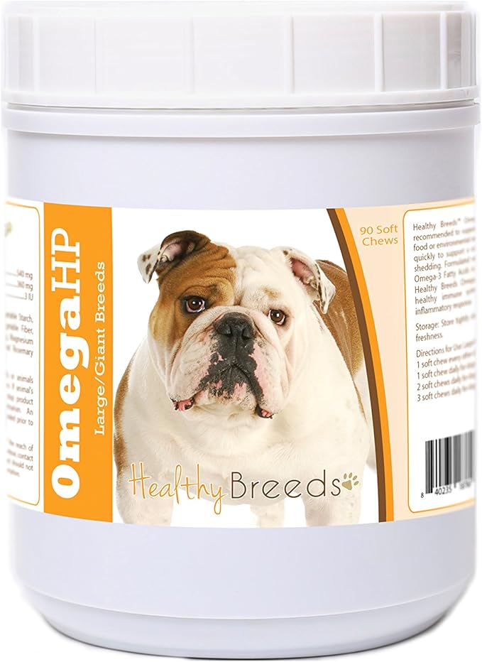 Healthy Breeds Bulldog Omega HP Fatty Acid Skin and Coat Support Soft Chews 90 Count