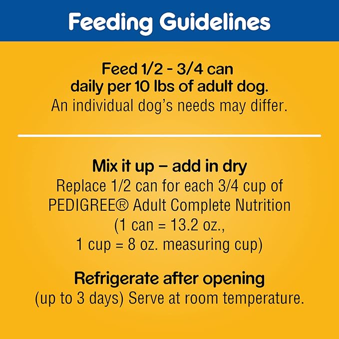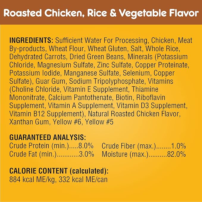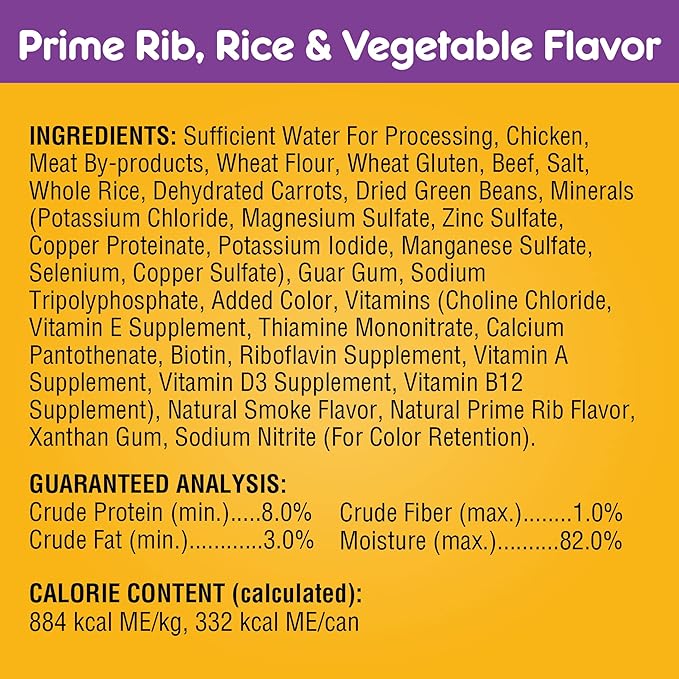 • CONTAINS TWELVE (12) 13.2 OZ. CANS of PEDIGREE CHOICE CUTS IN GRAVY Adult Canned Soft Wet Dog Food, 6 cans of Prime Rib, Rice & Vegetable Flavor and 6 cans of Roasted Chicken, Rice & Vegetable Flavor