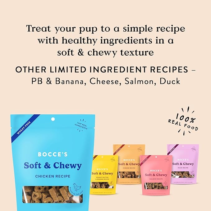 Bocce’s Bakery Oven Baked Chicken Recipe Treats for Dogs, Wheat-Free Everyday Dog Treats, Made with Real Ingredients, Baked in The USA, All-Natural Soft & Chewy Cookies, Chicken, 6 oz