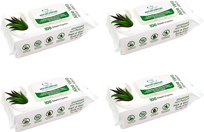Best Pet Supplies Dog Wipes, Hypoallergenic, Deodorizing, Cleaning Dogs' Paws, Butt, Face, Grooming, Non-Sticky Formula for Puppy, Cats and Sensitive Skin - 400 Pack, Hydrating Aloe Vera (Unscented)