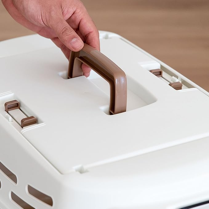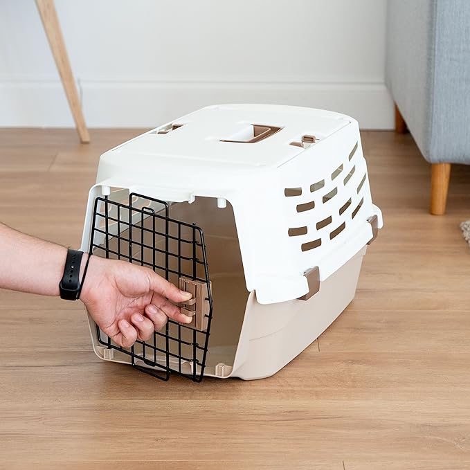 IRIS USA 23" Cat Carrier, Small Pet Carrier Hard, Dog Kennel with 2-Door Front and Top Access, Dog Carrier, up to 18 pounds, White/Almond