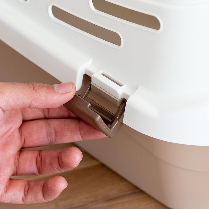 • SAFE AND COMFORTABLE - Protect your beloved family dog or cat while transporting them in comfort and ease in this sturdy plastic pet carrier that will give them the space they need to feel secure and safe. The carry handle attached to the top door is also great when on road trips while the buckles on the side keep the top cover and bottom tray securely attached.