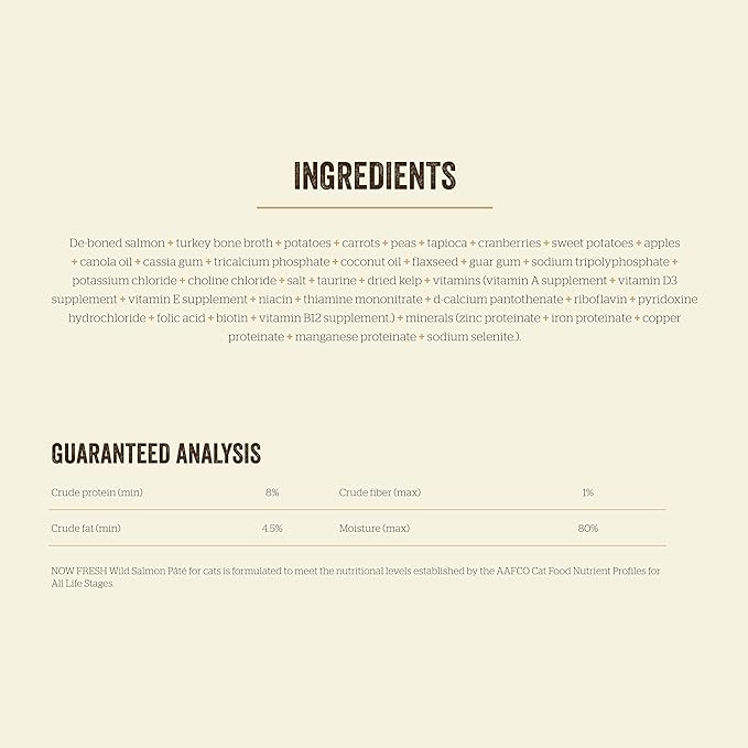 Now Fresh Grain Free Wet Cat Food, 6.4 oz - Wild Salmon Pâté with Bone Broth for Cats - Real Fish for Protein