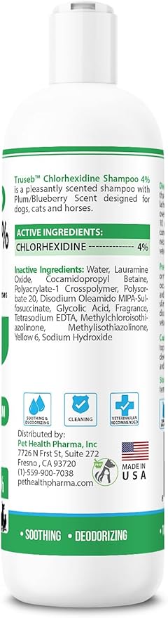 Truseb Topical Chlorhexidine 4% Shampoo for Dogs, Cats, and Horses with Plum/Blueberry Scent - 12 oz - Made in U.S.A (Chlorhexidine 4% Shampoo, 12 oz)