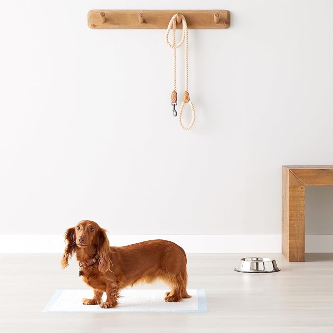 Amazon Basics Dog and Puppy Pee Pads with Leak-Proof Quick-Dry Design for Potty Training, Heavy Duty Absorbency, Regular Size, 24 x 23 Inches, Pack of 50, Blue & White