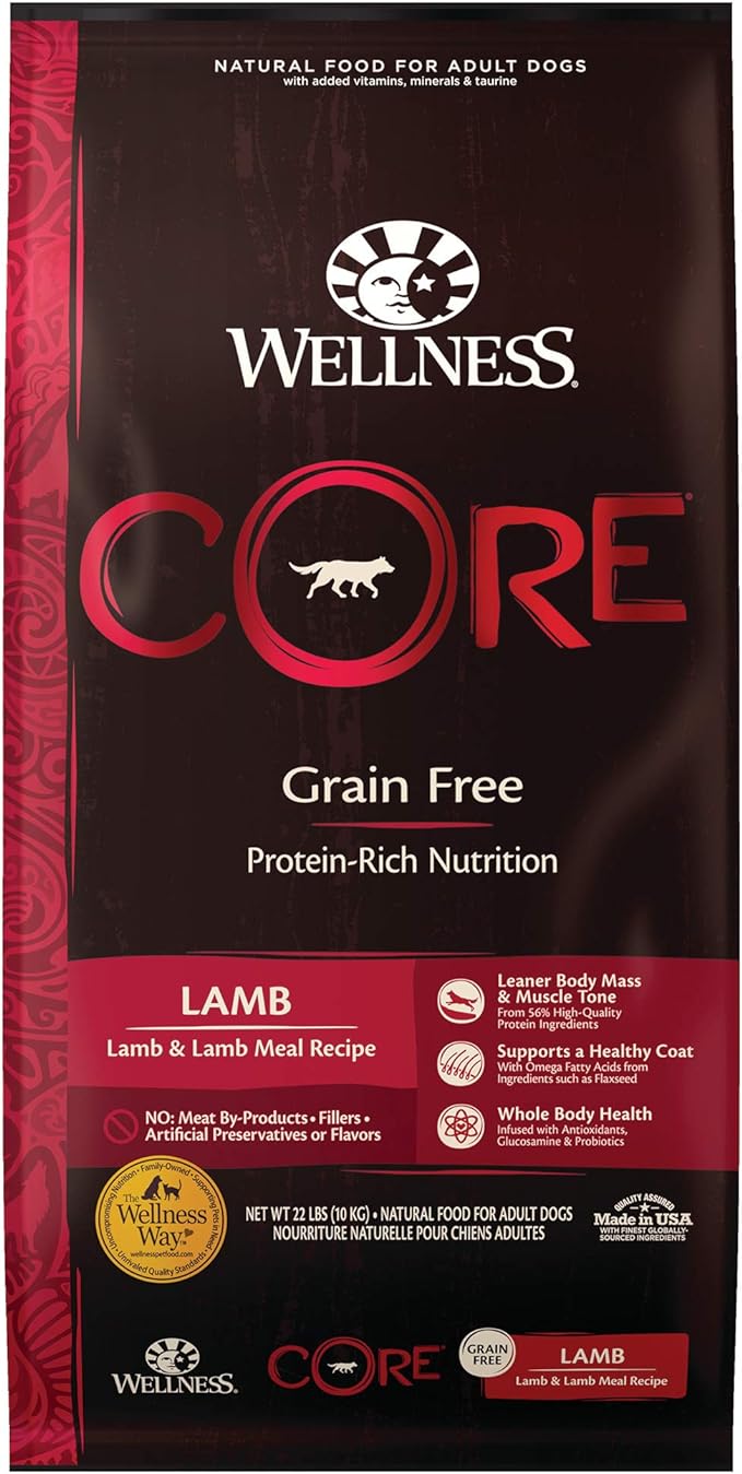 Wellness CORE Grain-Free High-Protein Dry Dog Food, Natural Ingredients, Made in USA with Real Meat, All Breeds, For Adult Dogs (Lamb, 22-Pound Bag)