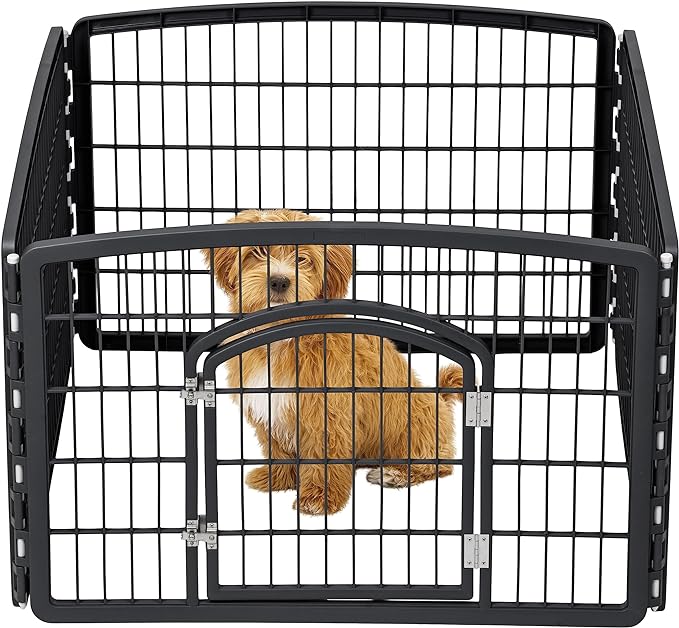 IRIS USA Dog Playpen, 4-Panel 24" Pet Playpen, Puppy Playpen, Indoor/Outdoor Dog Pen, 35 x 35 x 24, Foldable, Fold It Down, Easy Storing, Customizable, Black