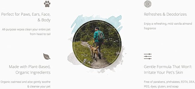 • PLANT-BASED, ORGANIC INGREDIENTS: Zogics’ Pet wipes for dogs are made with biodegradable, good-for-the-skin ingredients that are organic and sourced from nature, including aloe vera, oatmeal, and Moroccan argan oil. They also contain essential oils from vanilla and almonds to give a light, mild fragrance.