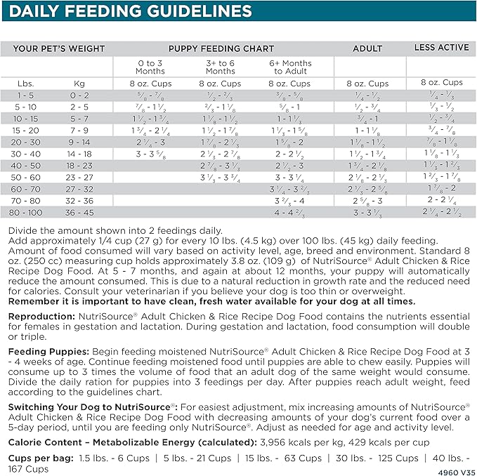 • NutriSource grain inclusive formulas deliver compact nutrition and include prebiotics and probiotics to help support a healthy gut