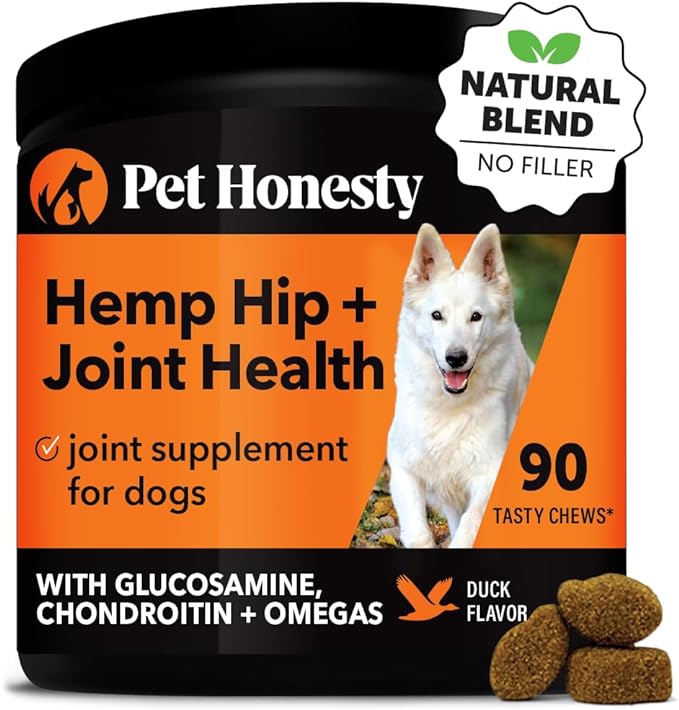 Pet Honesty Hemp Hip & Joint Supplement for Dogs - Hemp Oil & Hemp Powder - Glucosamine Chondroitin for Dogs, Turmeric, MSM, Green-Lipped Mussel, Supports Mobility, May Reduce Discomfort (Duck)