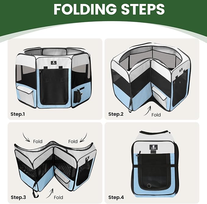 • The foldable pet playpen comes with a convenient carry case for easy storage and portability
