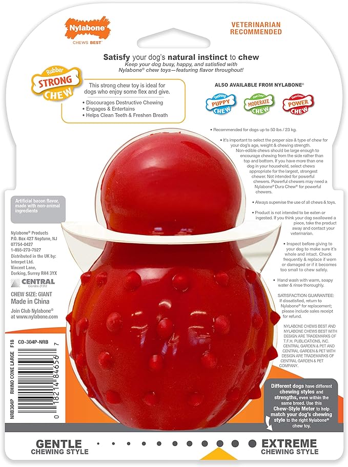 Nylabone Strong Chew Cone Stuffable Chew Toy for Dogs, Bacon Flavored Fillable Treat Toy, Large/Giant - Up to 50 lbs. (1 Count)