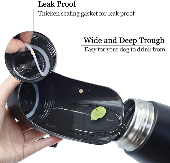 • THICKEN SEALING GASKET FOR LEAK PROOF: closured with thicken sealing gasket for food container, this portable dog water bottle has been strictly tested to stay closed and prevent water from dripping or leaking