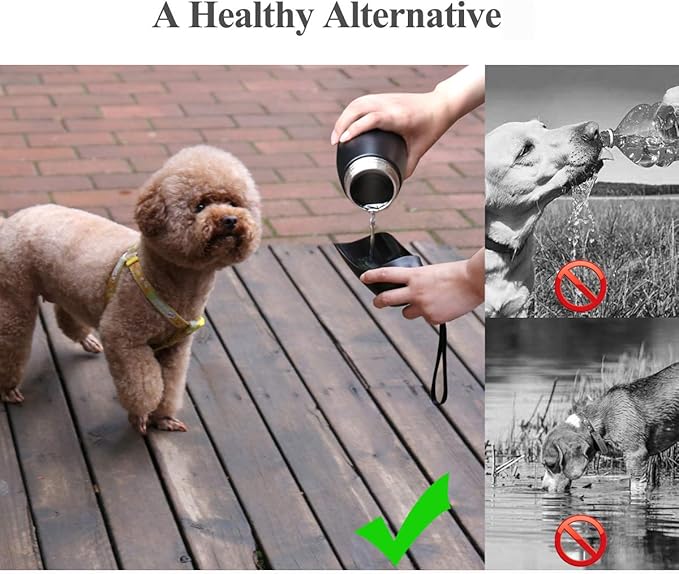 • STAINLESS STEEL BOTTLE: VIVAGLORY dog water bottle is constructed with food grade stainless steel, which is safer and more durable than the regular plastic one. It is a great choice for small, medium and large dogs