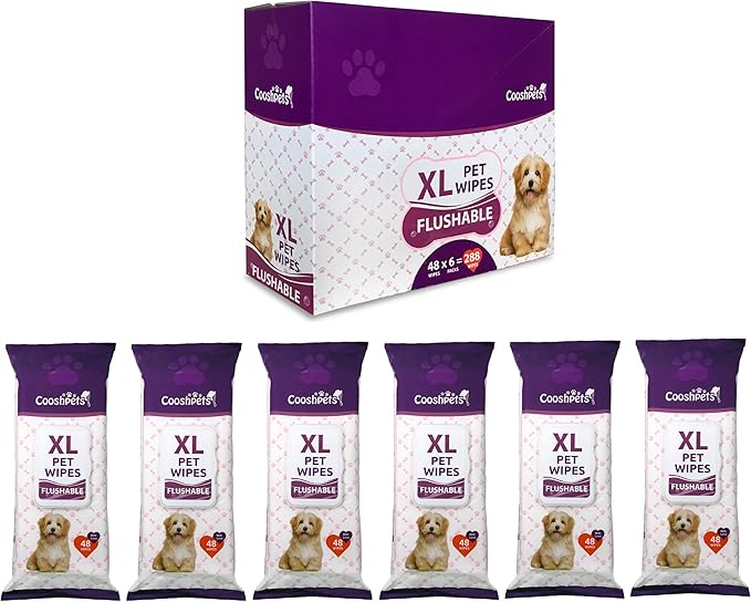 Premium Formulations XL FLUSHABLE Pet Wipes - Deodorizing,Grooming Wipes for Dogs & Cats - Earth-Friendly, Hypoallergenic Value Buy (6 Packs x 48 Wipes = 288 Wipes)