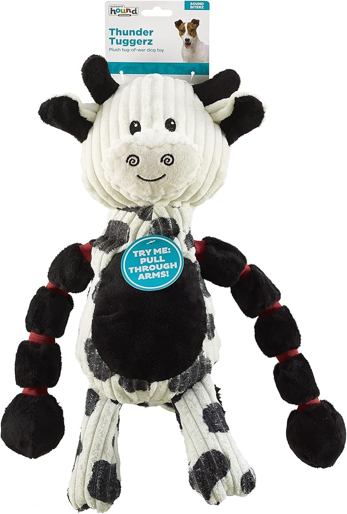 Outward Hound Thunda Tugga Cow Plush & Squeaky Dog Tug Toy
