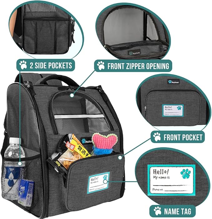 PetAmi Dog Backpack Carrier for Small Large Cat, Pet, Puppy, Ventilated Pet Hiking Backpack Travel Bag, Airline Approved Cat Backpack Carrier, Camping Biking Dog Bag Up to 18lbs Pet, Charcoal