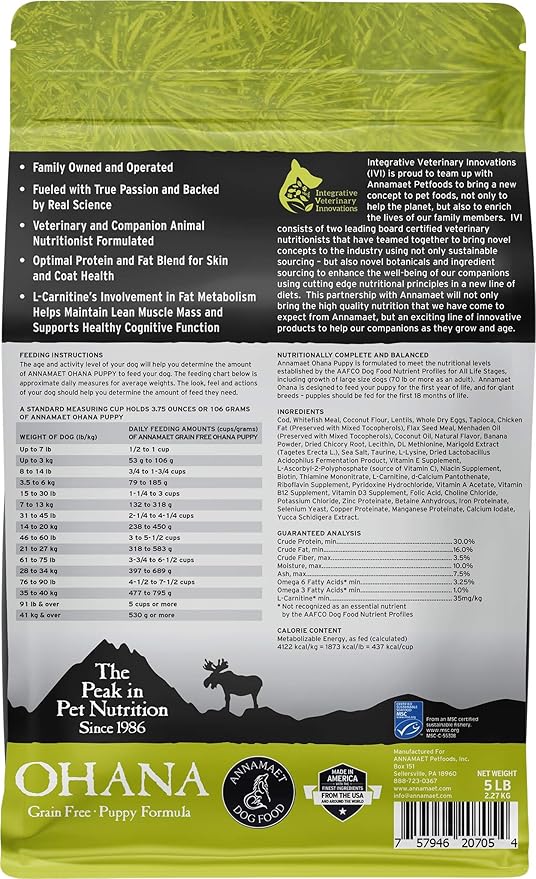 Annamaet Grain-Free Ohana Puppy Formula Dry Dog Food, (Line-Caught Cod & Whitefish), 5-lb Bag