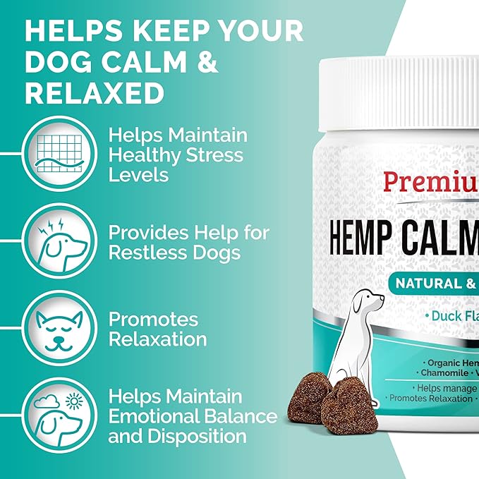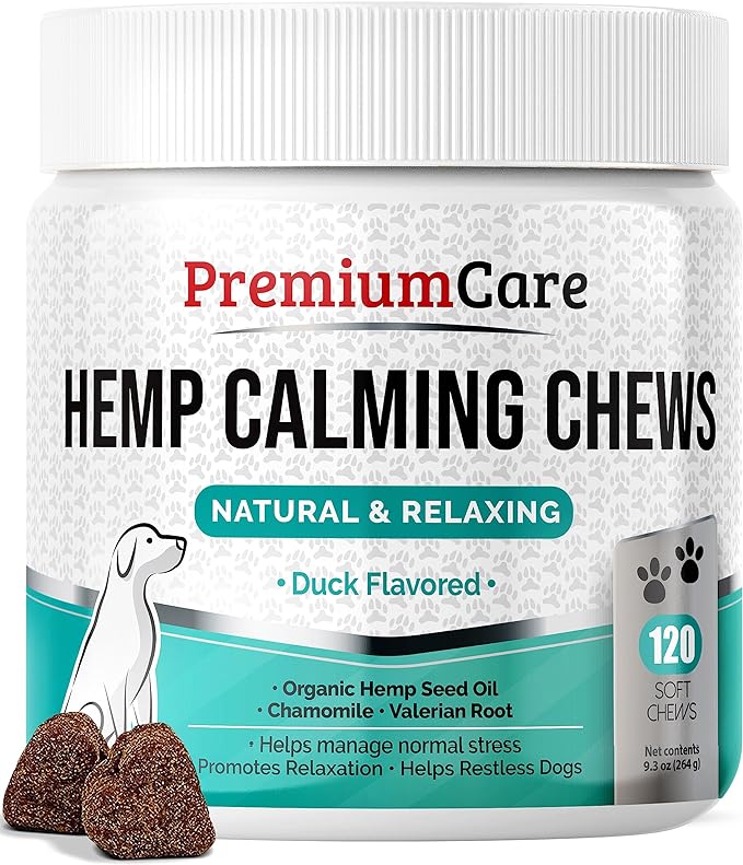 PREMIUM CARE Hemp Calming Chews for Dogs Anxiety, Made in USA, 9.3 oz (264g), Duck-Flavored, 120 count