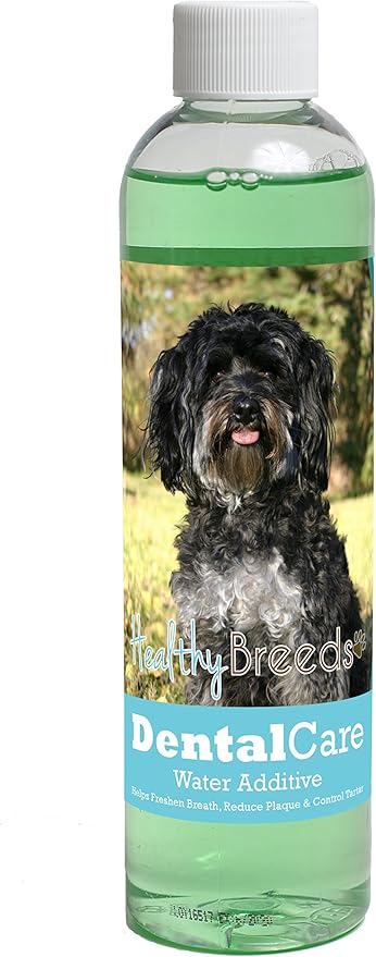 • Healthy Breeds Dental Care Water Additive is a veterinarian formulated, simple way to support your dog’s oral health