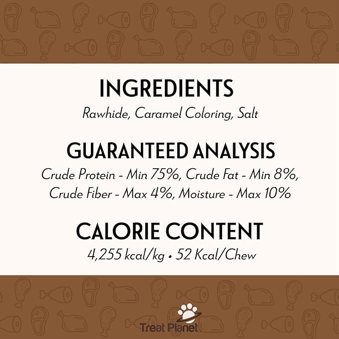 • 100% USA MADE DOG TREATS – Etta Says is proud to use 100% USA ingredients and products. Ingredients: Rawhide, Beef, Caramel Coloring, Salt.