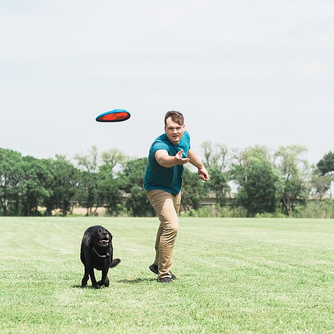 • Fetch Flight Dog Toy: This flexible flyer dog toy features a unique EZ Grip design that makes it easier to pick up for both you and your dog; A durable inner sail allows for better loft during play
