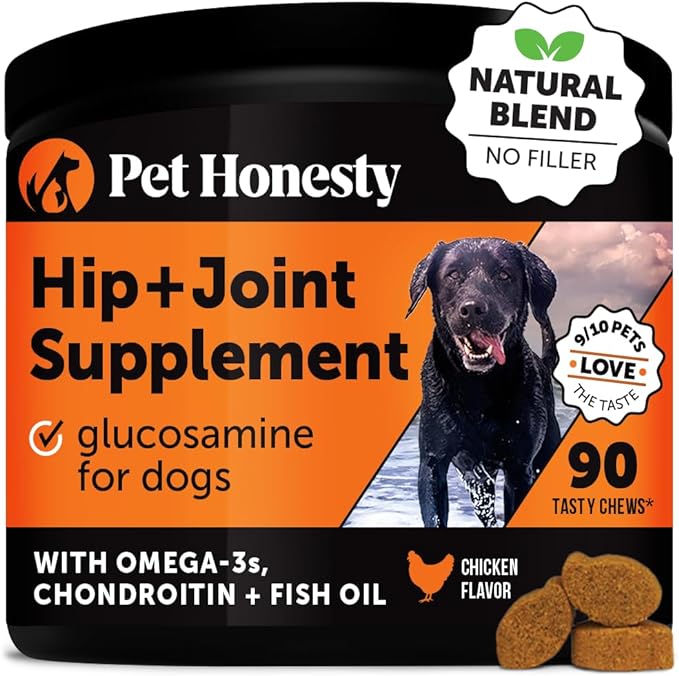Pet Honesty Hip & Joint Health - Glucosamine for Dogs Soft Chews, Joint Supplement for Dogs with Glucosamine Chondroitin, MSM, Turmeric, Anti Inflammatory for Dogs, Support + Mobility (Chicken 90ct)