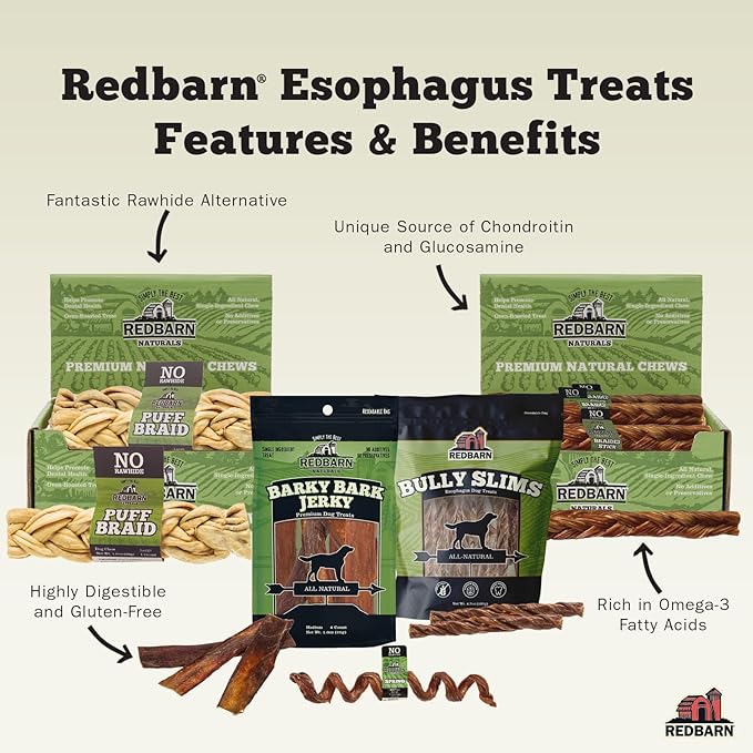 Redbarn All-Natural Bully Slims Beef Esophagus Chew Treats - Premium Grain-Free High Protein Low Fat Rawhide Alternative with No Artifical Ingredients - 4.7 oz Bag