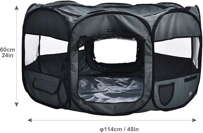 Amazon Basics Portable Soft Pet Dog Octagonal Travel Playpen, Large (45 x 45 x 24 Inches), Grey