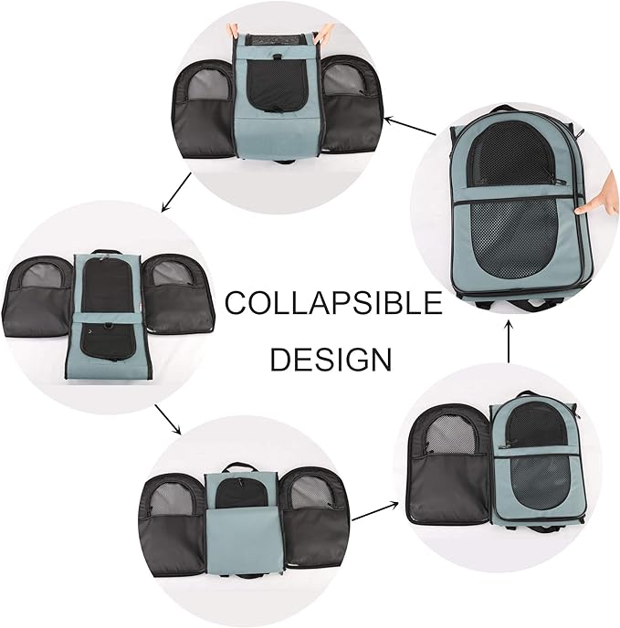 • BETTER CONSTUCTION-Well ventilated design for optimal airflow, two-way entry for easy access, top mesh window for more headroom and visibility, and thick, soft fleece bedding for your pet resting and relaxing. This backpack is firmly structured, providing ample room for your pet to move around.