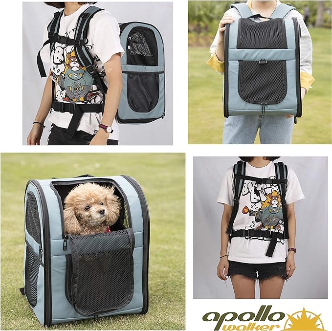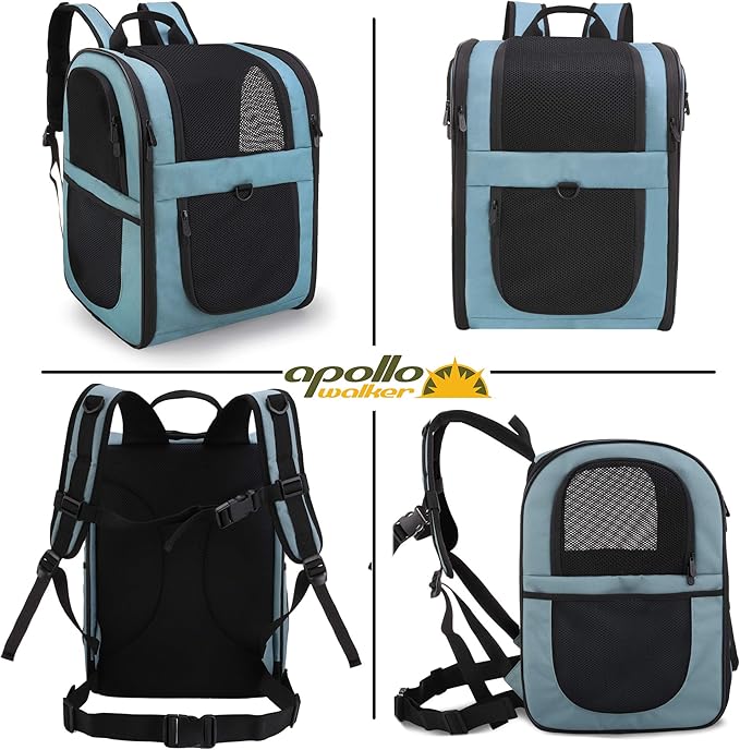 • ESCAPE PROOF- The last thing you want is an escaped pet running around the airplane cabin or outdoors. APOLLO WALKER pet backback carrier keeps your pet safe and secure while flying, walking, cycling, or hiking with claw-proof mesh and reinforced zippers. Carrier also has a leash tether to attach to your dog or cat’s collar if you decide to open the top window to let your pet stick their head out.