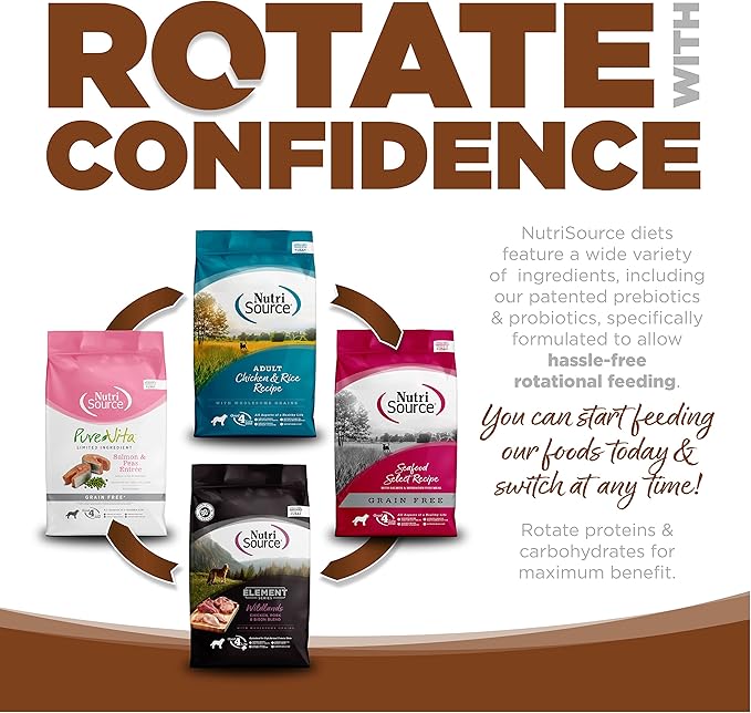 • NutriSource grain inclusive formulas deliver compact nutrition and include prebiotics and probiotics to help support a healthy gut