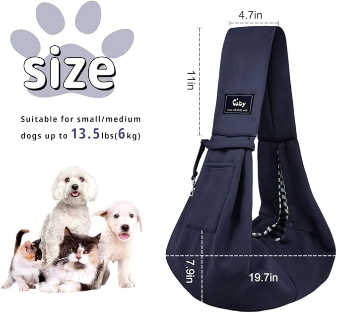 CUBY Dog and Cat Sling Carrier - Hands Free Reversible Pet Papoose Bag - Soft Pouch and Tote Design - Suitable for Puppy, Small Dogs Cats Outdoor (Classic Blue, One Size classic)