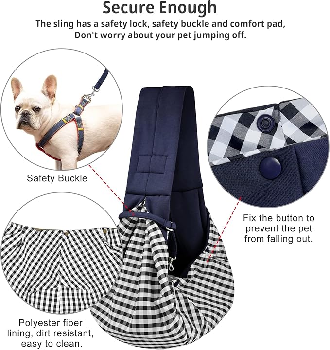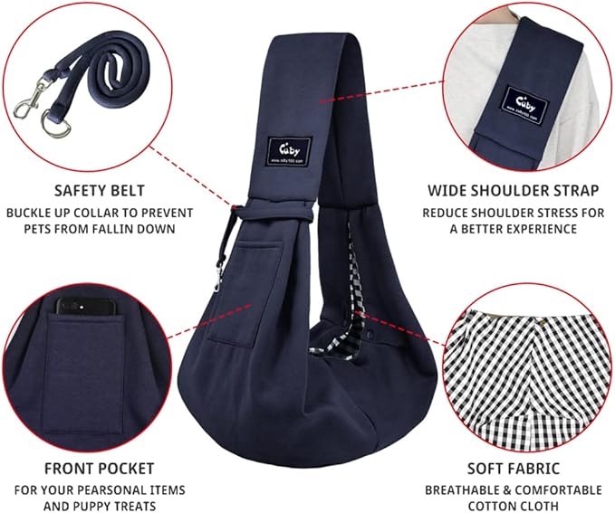 • 【Safe and Soft for Pets】Lovely Reversible Pet Sling Carrier. Hands-free sling-style carrier loops over shoulder while the pet rests in the pouch on the opposite hip to keep pet secure and comfortable.