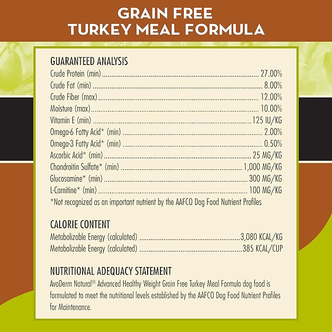 • One (1) 4 Pound Bag: Avoderm Natural Advanced Healthy Weight Grain Free Turkey Meal Adult Dry Dog Food