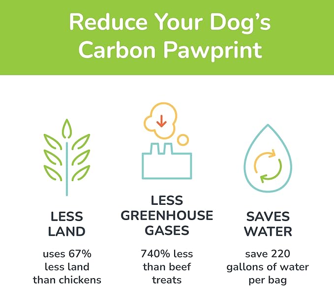 • REDUCING THE CARBON PAWPRINT - We make sustainability a priority! Insect protein uses less water & almost no greenhouse gases. Our treats save 200 gallons of water PER BAG compared to traditional products.