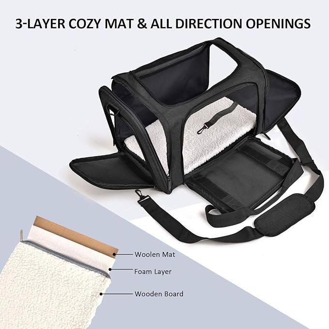 • AIRLINE APPROVED CARRIER - With airline-approved design, you can take your pet to go to everywhere. This pet carrier provides two connecting loop handles for balanced carrying as a dual seat belt or luggage strap to secure transport