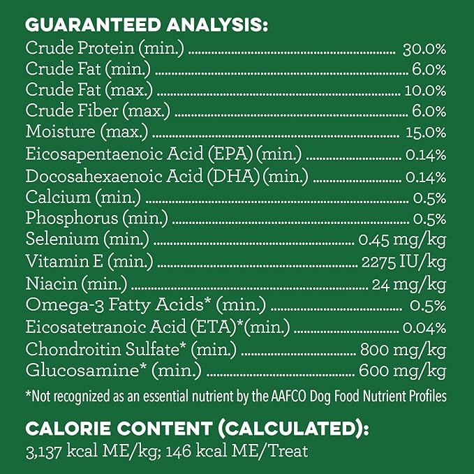 • 3,137 kcal ME/kg;90 kcal ME/treat (calculated)