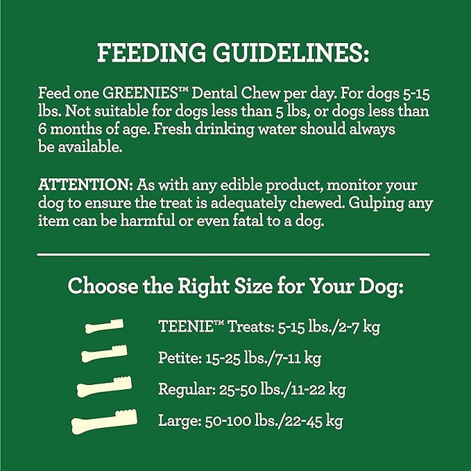 • GREENIES Treats for Dogs are veterinarian recommended for at-home oral care, keeping your 15-25 lb. dog happy and their tail wagging