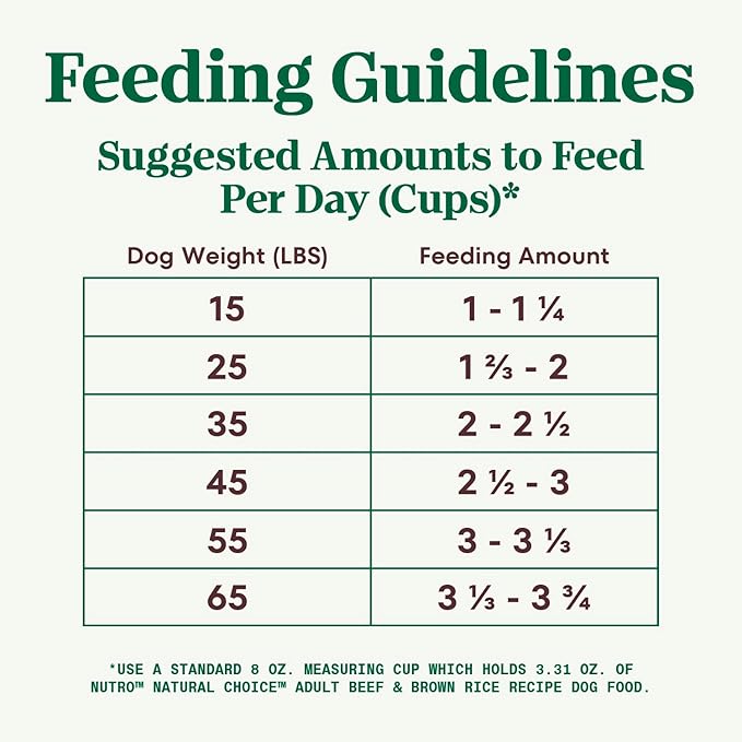 • 28 lb. Bag: Contains one (1) 28 lb. bag of NUTRO NATURAL CHOICE Adult Dry Dog Food, Beef & Brown Rice Recipe Dog Kibble