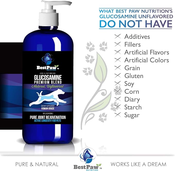 Best Paw Nutrition - Unflavored Liquid Glucosamine for Dogs & Cats - Chondroitin, MSM, Hyaluronic Acid - Dog Arthritis Home Remedy - Joint Supplement for Hip & Joint Pain Relief Pets Love - 16oz