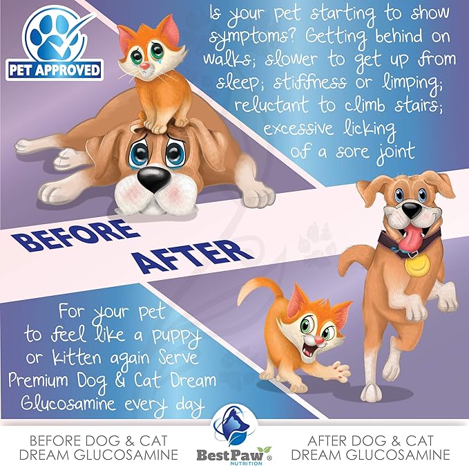 • VETERINARIAN RECOMMENDED - Vets recommend trying Dog & Cat Dream Glucosamine before medication. Safe, natural and no-side effects make it a veterinarian's top choice. Try this right away if you're looking for a home remedy alternative to medicine.