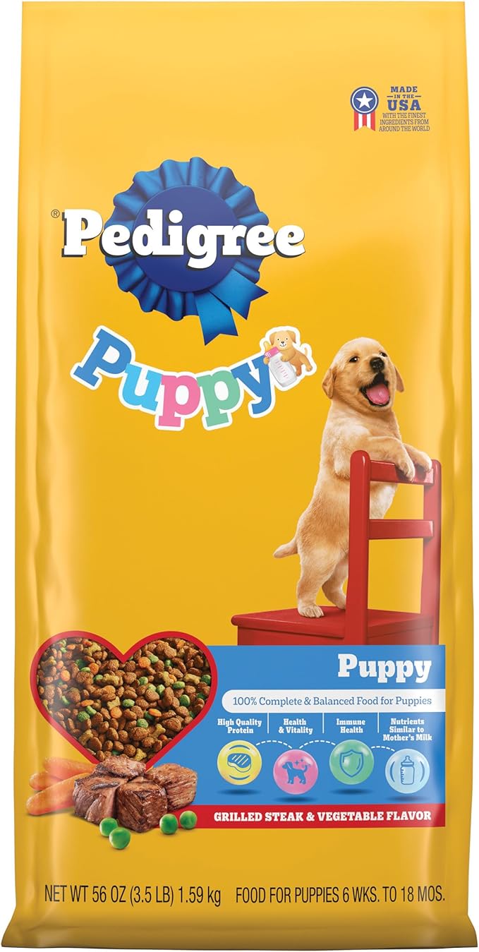 PEDIGREE Puppy Growth & Protection Dry Dog Food Grilled Steak & Vegetable Flavor, 3.5 lb. Bag