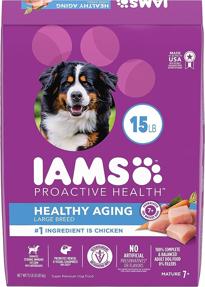 • IAMS Healthy Aging Adult Large Breed Dry Dog Food for Senior Dogs with Real Chicken, 15 lb. Bag