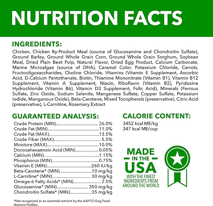 • Formulated to support healthy bones and joint health with a balance of key nutrients for large breed senior dogs
