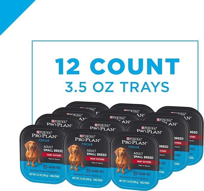 Purina Pro Plan Wet Dog Food for Small Dogs, Adult Small Breed Beef Entree High Protein Dog Food - (Pack of 12) 3.5 oz. Trays