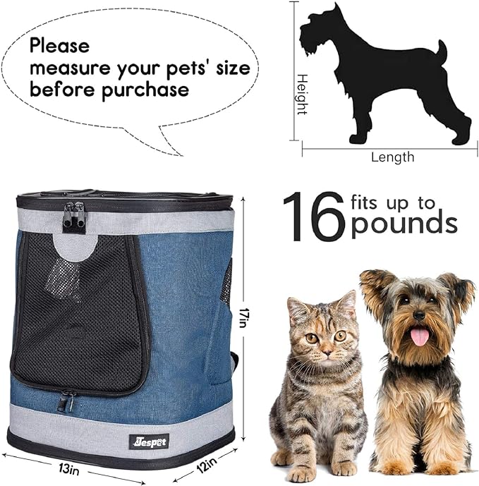 JESPET & GOOPAWS Pet Backpack Carrier for Small Dog, Puppy, Soft Carrier Backpack Ideal for Traveling, Hiking, Walking and Outdoor Activities with Family (Blue Grey)