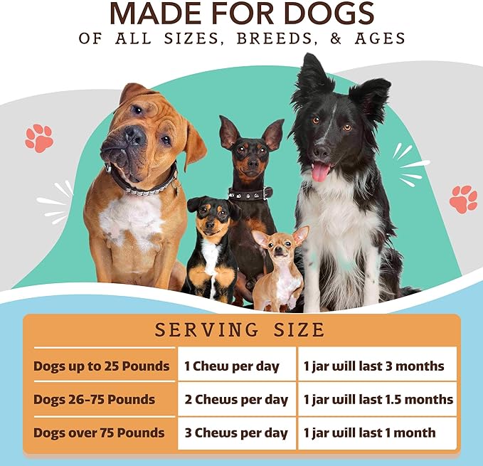 • Made with Care in the USA: We are passionate about creating products that prioritize the well-being of your beloved dogs. Our dog vitamins are thoughtfully made by dog lovers and experts, and our supplements are carefully handcrafted in small batches in the USA. Rest assured that your fur babies will always receive the best