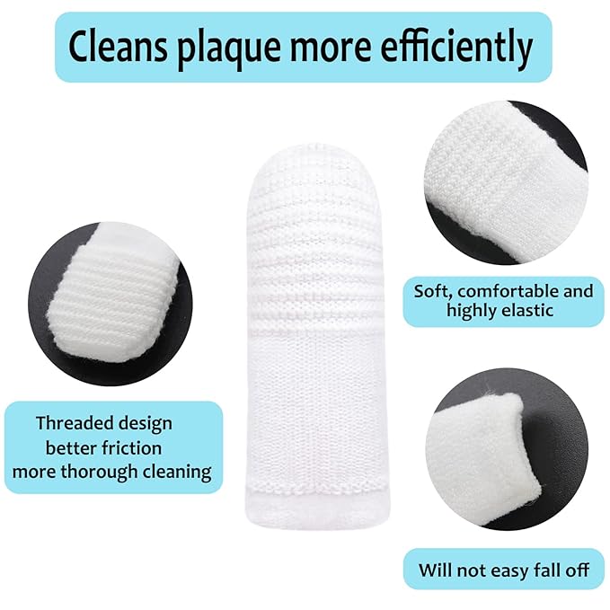 • The two-finger toothbrush is made of natural fiber, nylon and cotton, with thread design, soft and comfortable, pet finger toothbrush can be tightly worn on the fingers, not easy to fall off.Durable, washable and air-dried for repeated use.The thread design has more friction, more effective Clean your pet's mouth.